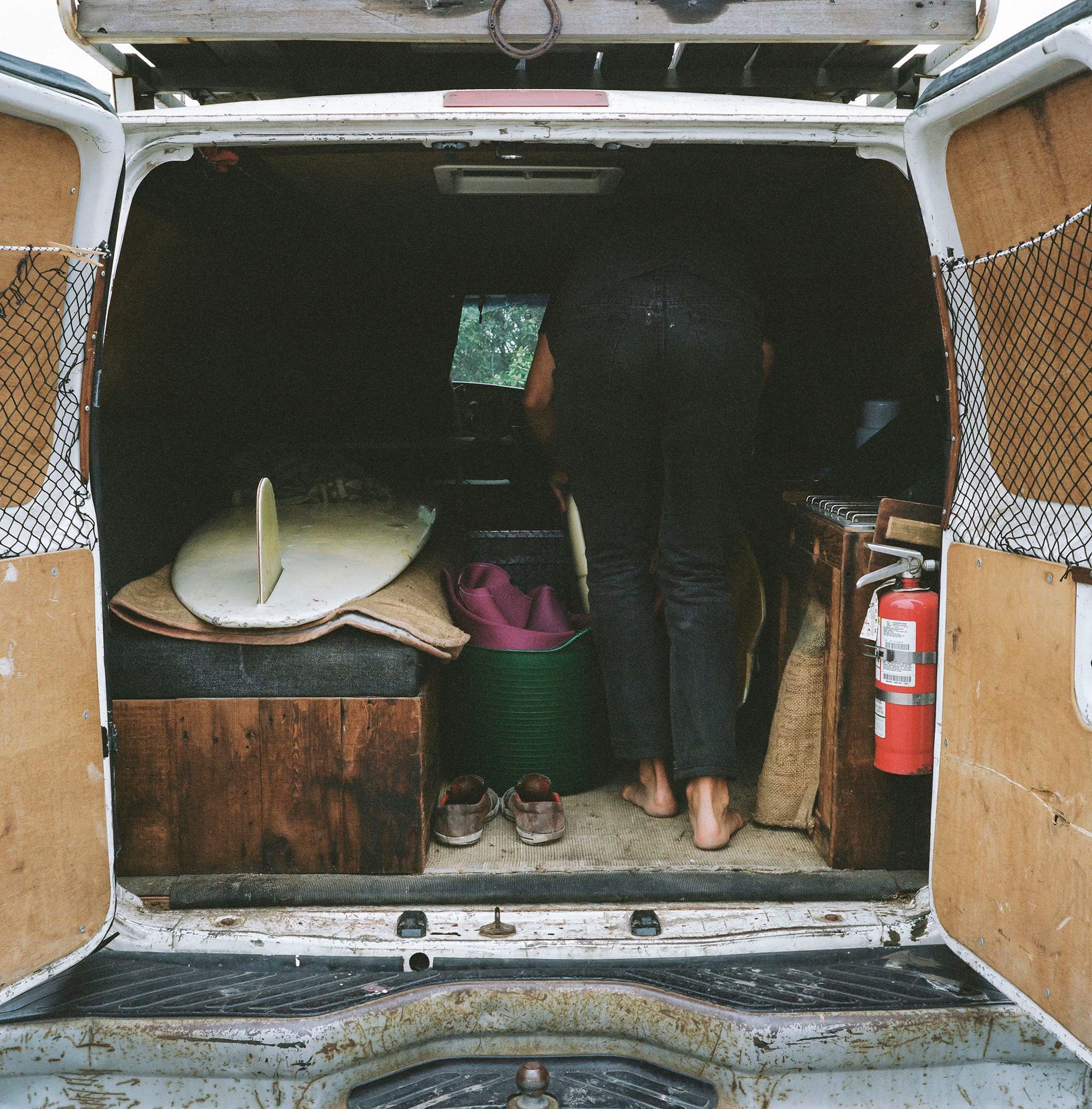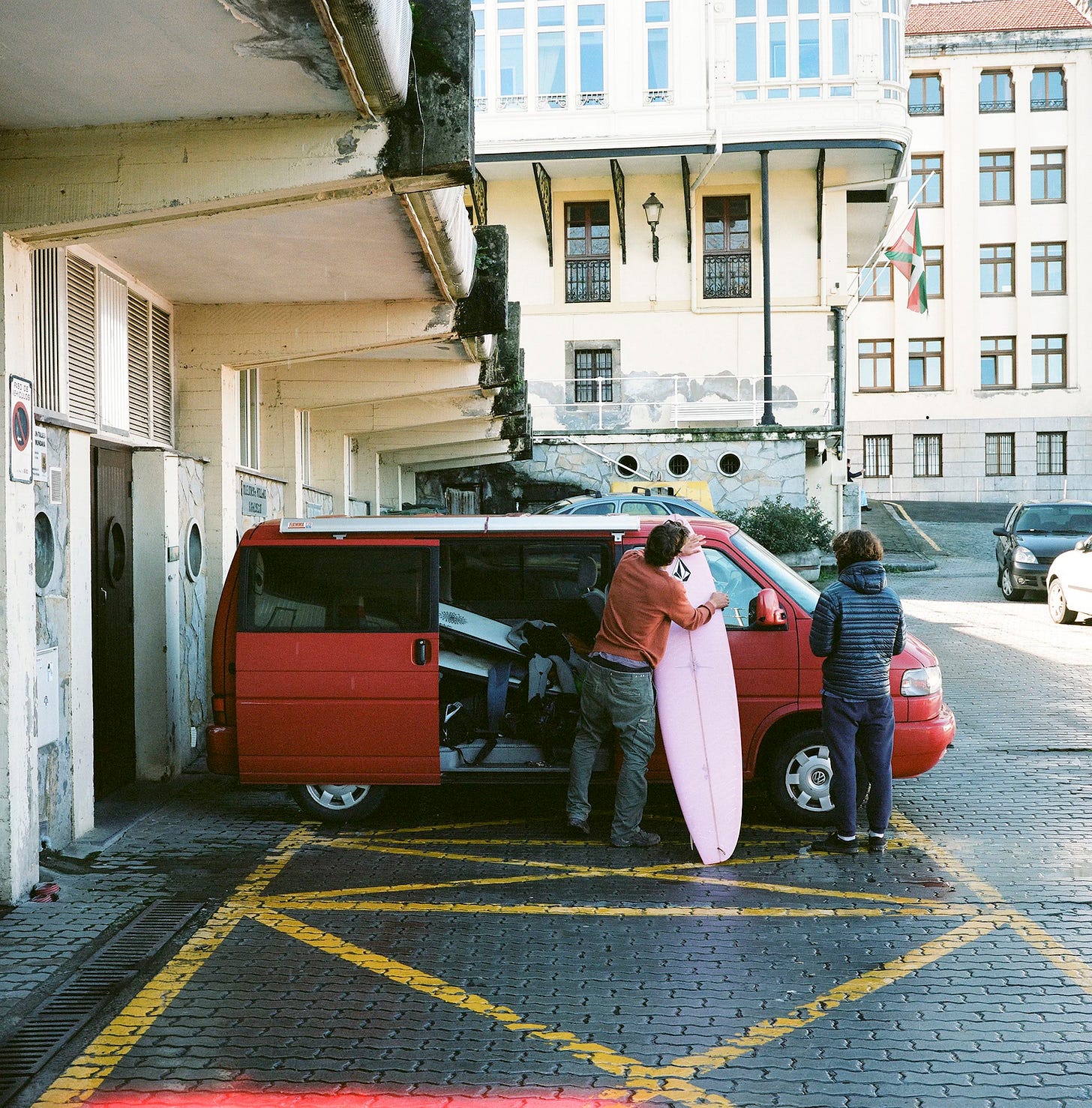 In the winter of 2013, I spent two months in Europe traveling and living out of smaller vans. In January, I joined Cyrus Sutton and Ryan Burch on a trip to the Basque Country to surf Mondaka and some other waves. We crashed on people’s couches but mostly slept in a rental van that we called the “Campy Camper.” It was maneuverable, easy to park in the ancient roads of San Sebastián and Biarritz, and had just enough room to sleep comfortably. By day, we folded the bed up and hauled surfboards and blanks up and down the coast. The Basque Country in January is hardly hospitable, but the van kept me dry and let me stealth camp on sleepy side streets. It’s one of my fondest traveling memories.