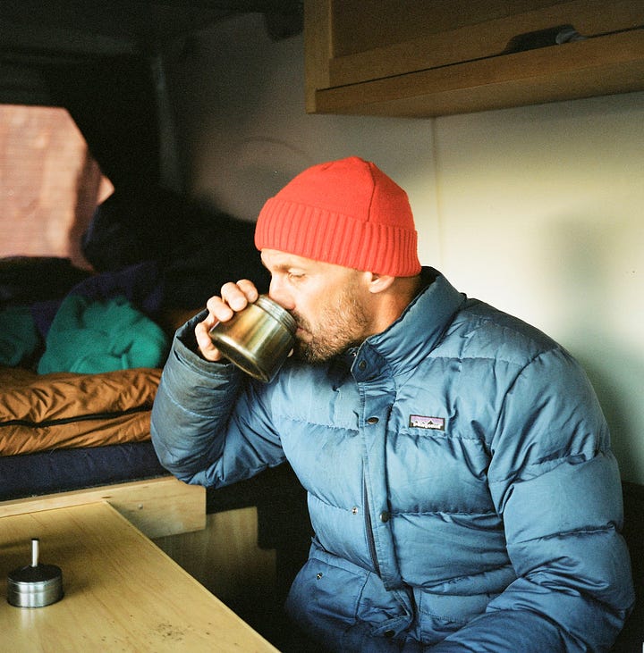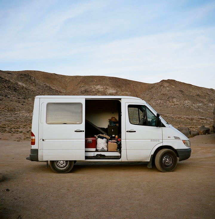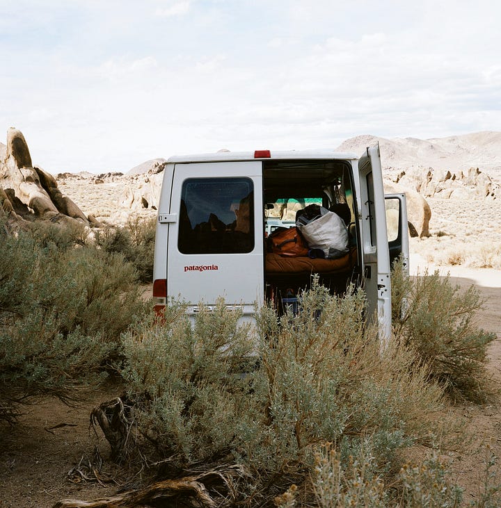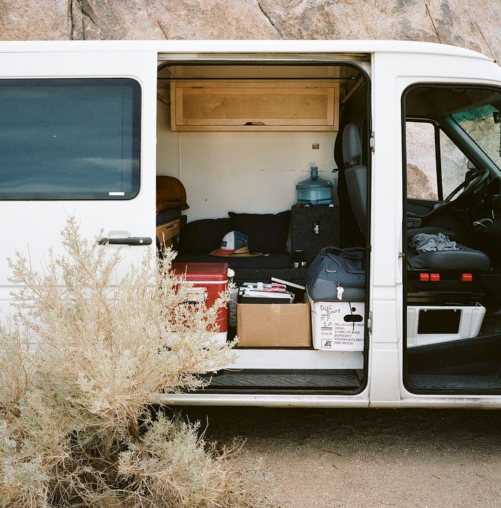 Around the same time, back in California, I was spending time with Jeff Johnson and Chris Reardon, both enjoyers of the smaller, simpler van builds. Jeff had an 118 low-top sprinter that he outfitted for surfing and rock climbing. Chris Reardon had an E350 Ford Econoline with a 7.3 Power Stroke that he used as a work van and stealth camping van for ripping down the coast looking for waves. Both of their setups were tastefully capable but also very practical. I featured them in Home Is Where You Park It, and shameless plug, if you join the substack as a founding member, I’ll send you one.